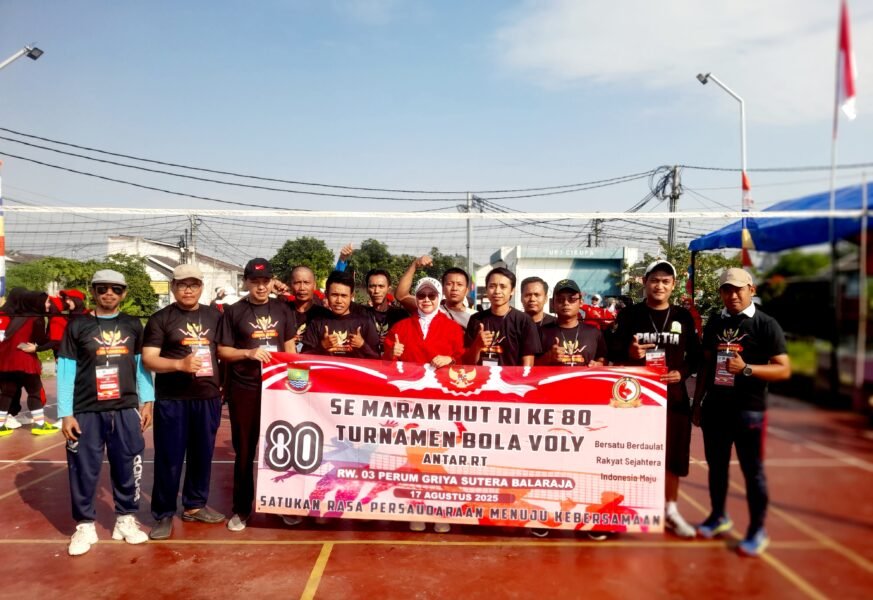 Kab.Tangerang – Dalam rangka memperingati Hari Ulang Tahun ke-80 Republik Indonesia, warga Perumahan Griya Sutera Balaraja menunjukkan semangat nasionalisme dan solidaritas sosial melalui penyelenggaraan turnamen voli antar RT serta kegiatan senam pagi bersama. Acara ini bukan sekadar bentuk perayaan, melainkan momentum strategis untuk mempererat tali silaturahmi dan membangun harmoni di lingkungan tempat tinggal.